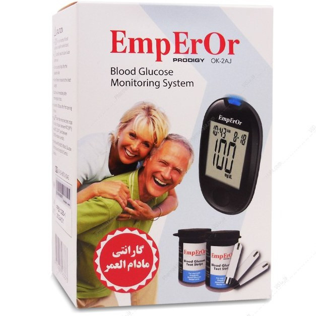 دستگاه تست قندخون امپرور به همراه ۵۰ عدد نوار و لانست و اتو لانست و باطری